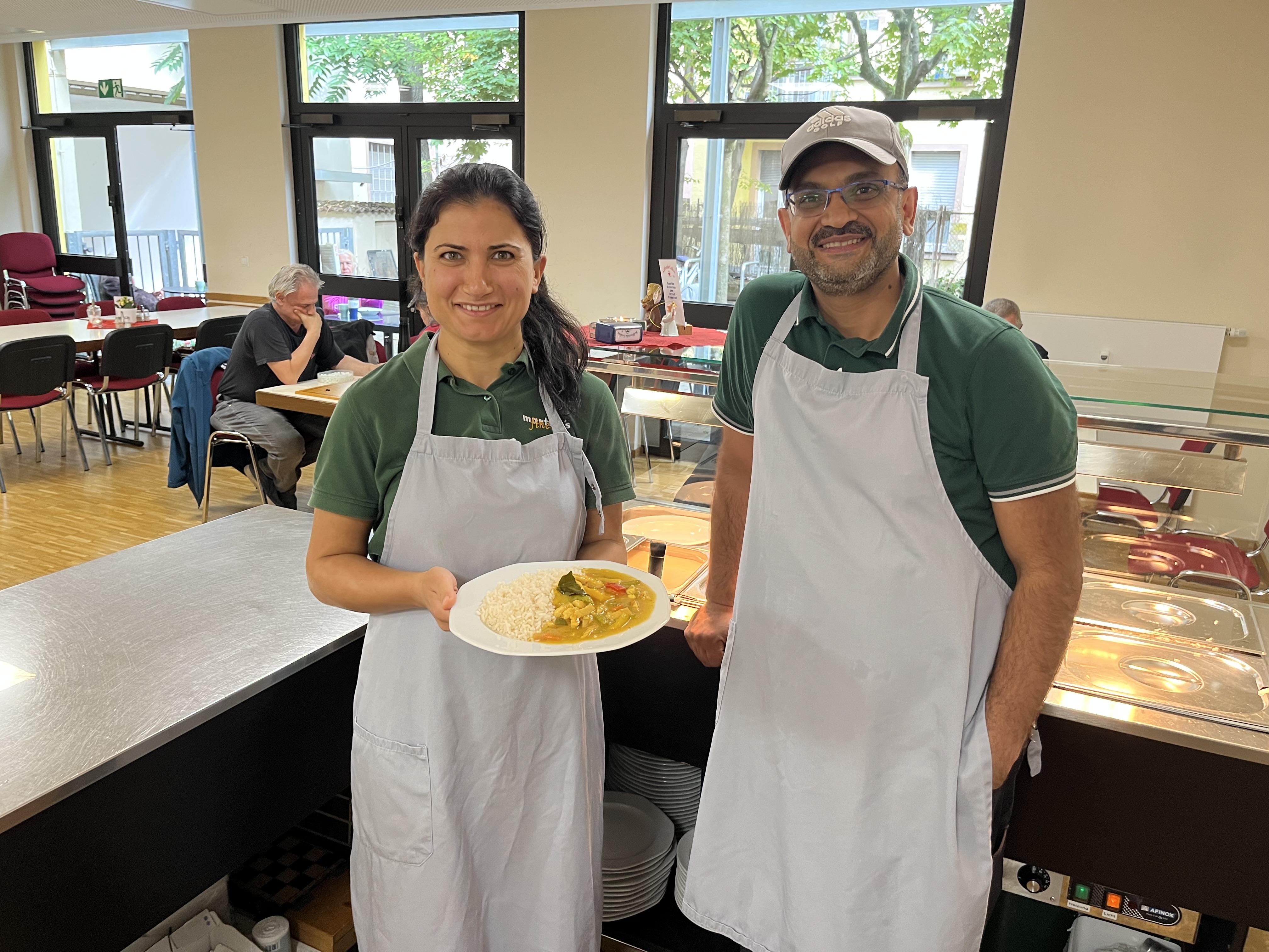 In der Küche des Dominikanerklosters wird das Essen gekocht und frisch zur Kaffeestube geliefert. Sonnur und Faisal, die Mitarbeiter von Martha’s finest, übernehmen den Service in der Gaststube. Das Mittagessen mit einer Suppe und einem Hauptgericht kostet seit vielen Jahren unverändert 3,50 Euro. Unser Angebot richtet sich insbesondere an ältere Menschen, die an und unter der Armutsgrenze leben. Menschen mit Frankfurt-Pass erhalten von uns einmal monatlich ein Essen gratis. Und einige Kirchengemeinden in Frankfurt erwerben von uns Essensgutscheine zur Verteilung in ihren Stadtteilen.